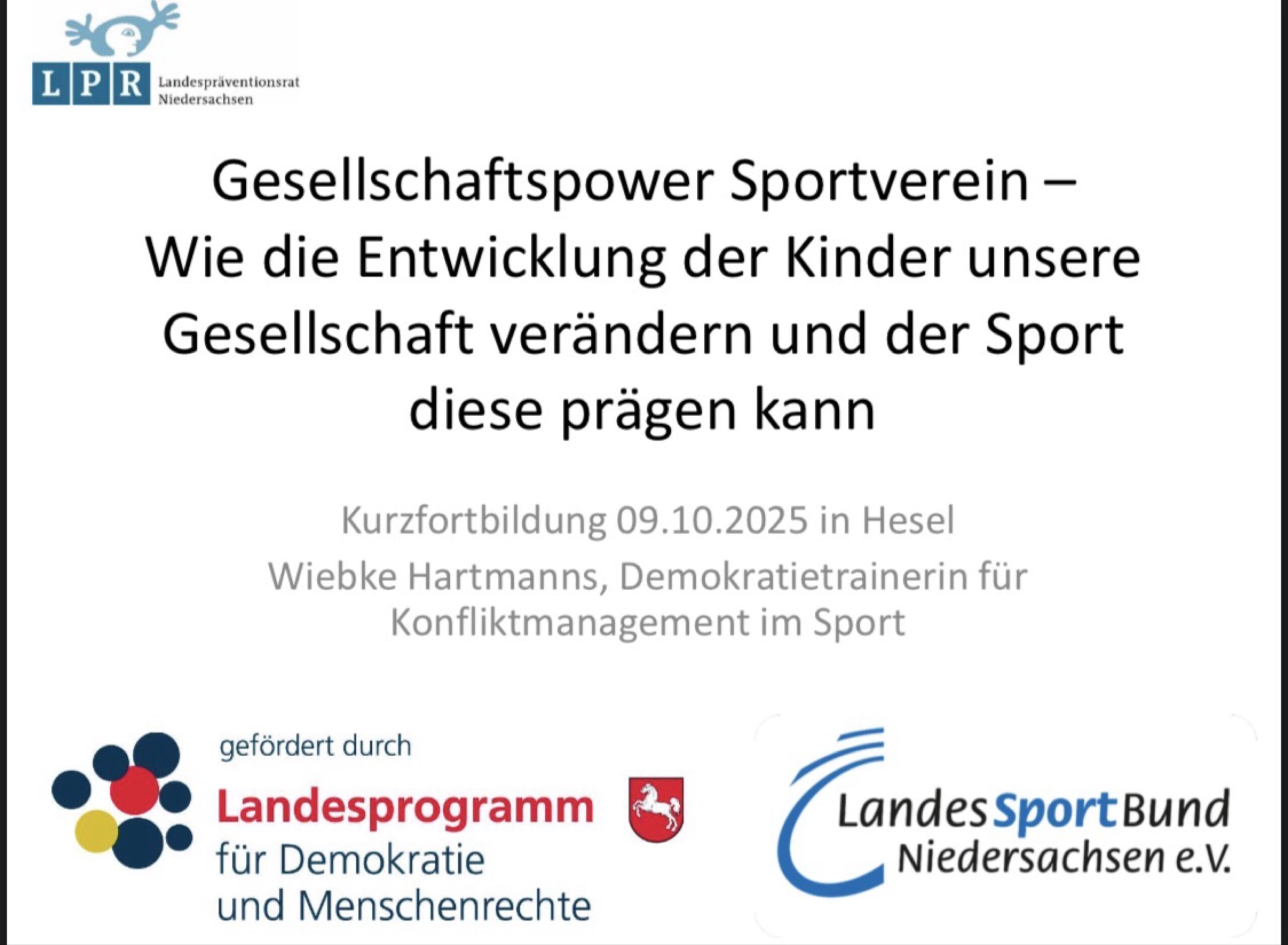 Im Oktober 2025 erlebten 14 Übungsleitende, welche Gesellschaftspower der Sportverein hat und wie viele soziale Kompetenzen Kinder und Jugendliche dort erwerben können.In ländlichen Regionen sind fast alle Kinder im Sportverein aktiv – und genau da liegt die Chance! 🙌
